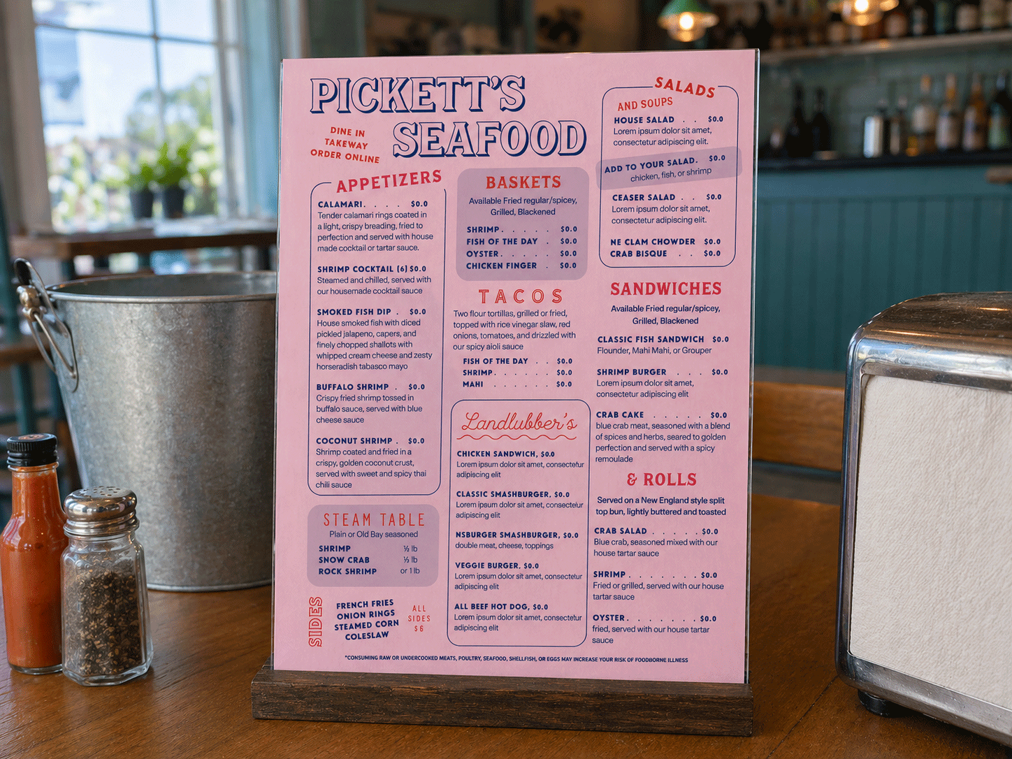 A seafood-centric restaurant and market concept rooted in a casual, coastal sensibility—serving fresh, locally sourced dishes from fish sandwiches and po’boys to grilled and fried staples. Built on a balance of quality and approachability, the brand reflects a family-driven vision for the community.